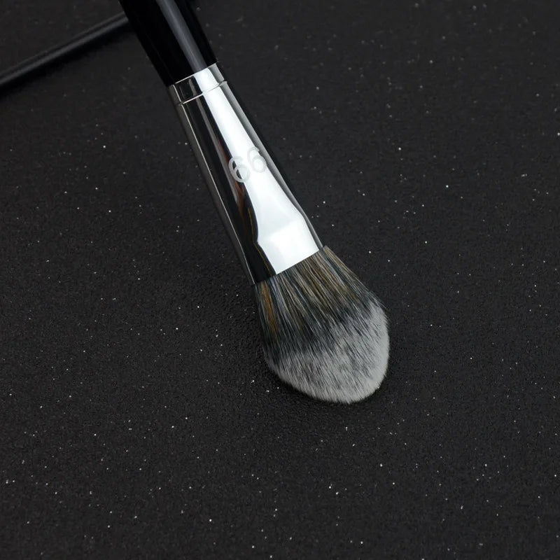 Crafted with ultra-soft synthetic wool fibers, the brush feels gentle on the skin and blends makeup effortlessly for a natural, seamless finish. The solid wood handle provides a sturdy, comfortable grip, making it easy to control and perfect for both everyday use and professional makeup application.